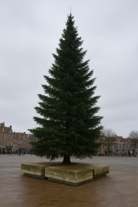 Extra hoge boom voor op het plein of op de markt. Iedereen ziet dat het kerst is.